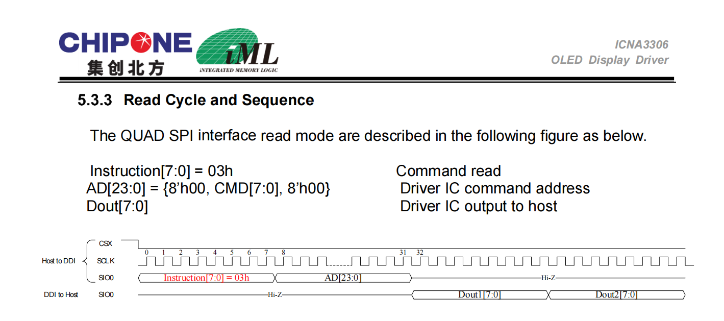 我使用ospi接口驱动icna3306AMOLED屏幕读取id,获取的数据都是0,不知道怎么解决,求助各位看一下是我代码哪里有问题